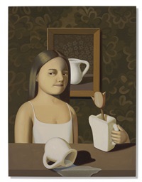 Anna Weyant (b.1995) is a figurative oil painter from Calgary, Canada. Weyant received her BFA from Rhode Island School of Design in 2017 and currently lives and works in New York City. Play, corruption, and indulgence are important themes in Weyant’s work. She is interested in devious, semi-sympathetic characters and tragicomic narratives. Her figures are often self-reflective and primarily young women. In her work, Weyant searches for humour in the clash of youth rebellion and repression, and the seemingly paradoxical idea of misbehaving within a structured and controlled environment.