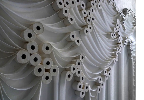 Gökçebağ works predominantly in two media. On one hand, he has created photographic work, often crisp geometrical compositions of food. On the other hand, he is especially well-known for his sculptures and installations, in which he transforms everyday objects into hybrid entities. Gökçebağ combines different materials, substitutes one for another, changes the usual function of the object, and alters the position from which people view it. As such, oriental rugs replace the bottom of plastic buckets and toilet paper is used as the material of delicate sculptures. Rendering the familiar unfamiliar, in a way that the ordinary becomes extraordinary, Gökçebağ gives objects a new existence. Moreover, he does so with an incredible attention for the formal aesthetics of the objects he is working with, and a quirky sense of humour, resulting in calmly restrained, yet light and often funny works that undoubtedly reference the Duchampian ready-made.