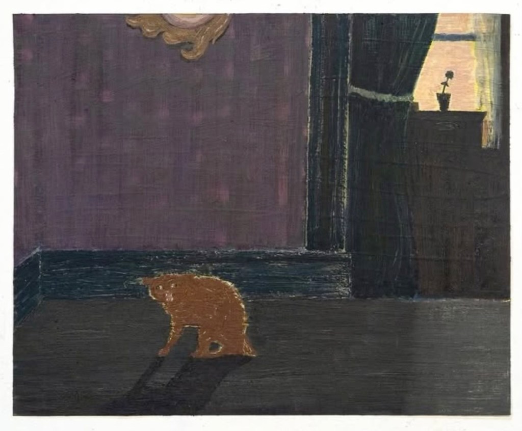 Fergal Styles, Crying Cat in the Good Room 2, 2024 , Oil, gouache, acrylic and oil pastel on paper, 32.2 x 27.2 cm