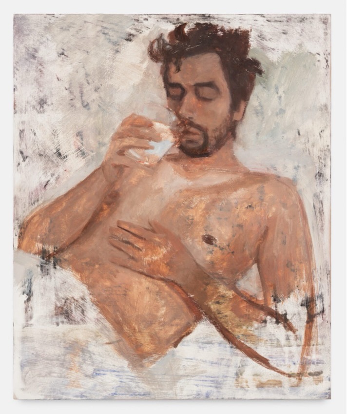 Nathanaëlle Herbelin, Jérémie, verre d’eau, 2022, oil on wood – 38×46 cm